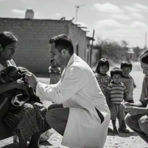 En cada camino polvoriento, en cada comunidad alejada, hay historias de valentía y dedicación. Médicos y enfermeras que, como en esta imagen, extienden su mano para sanar, incluso cuando los recursos son escasos.Nuestra misión va más allá de vestirte a ti; es un compromiso con cada sonrisa de alivio que nace en los rincones más olvidados de México.Un porcentaje de cada compra se transforma directamente en apoyo tangible: equipo médico esencial, insumos básicos y suministros para clínicas pequeñas y rurales. Así, al elegirnos, no solo inviertes en tu comodidad y profesionalismo, sino que te conviertes en un pilar fundamental para mejorar el acceso a la salud de quienes más lo necesitan.